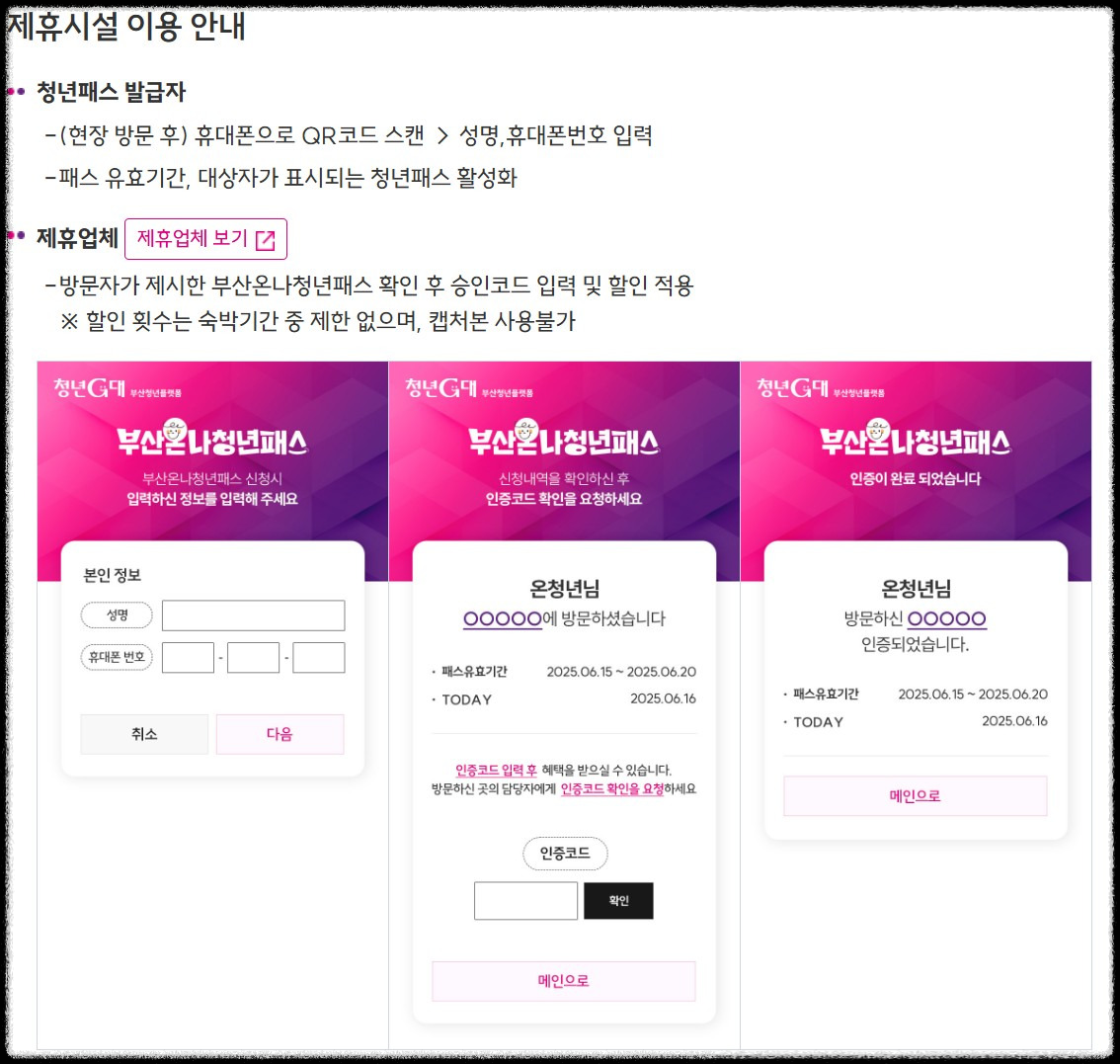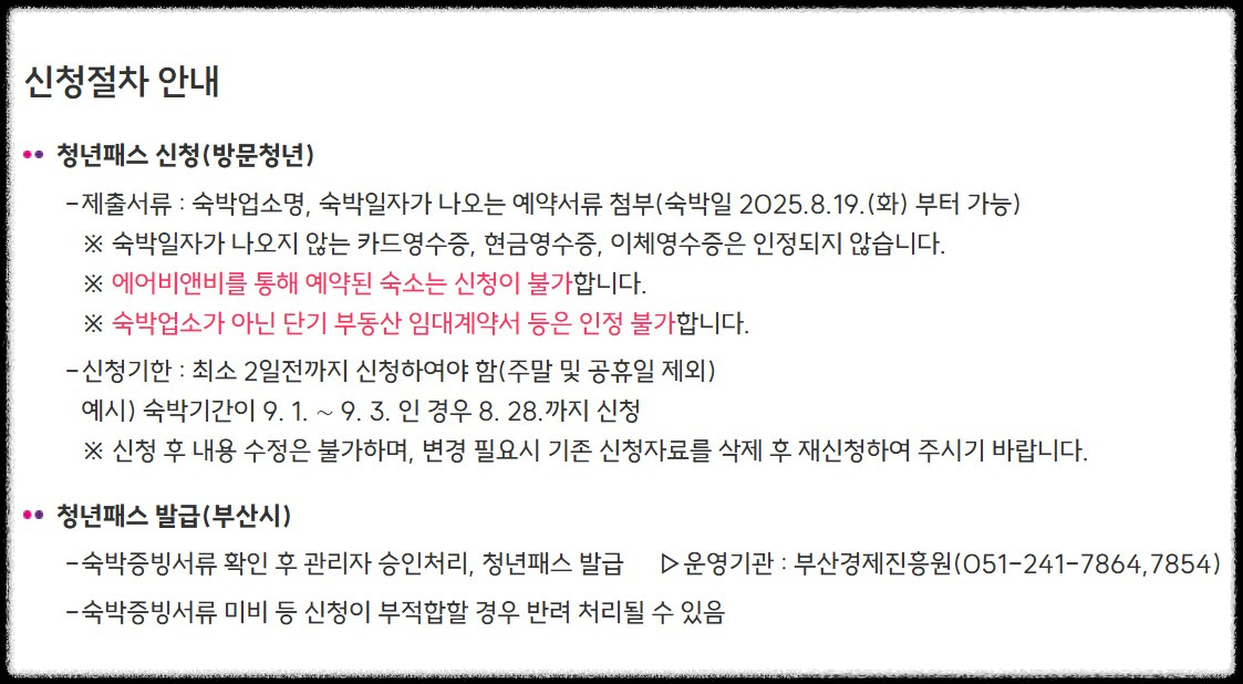- 숙박 요건 : 부산 내 1박 이상 숙박 필수
