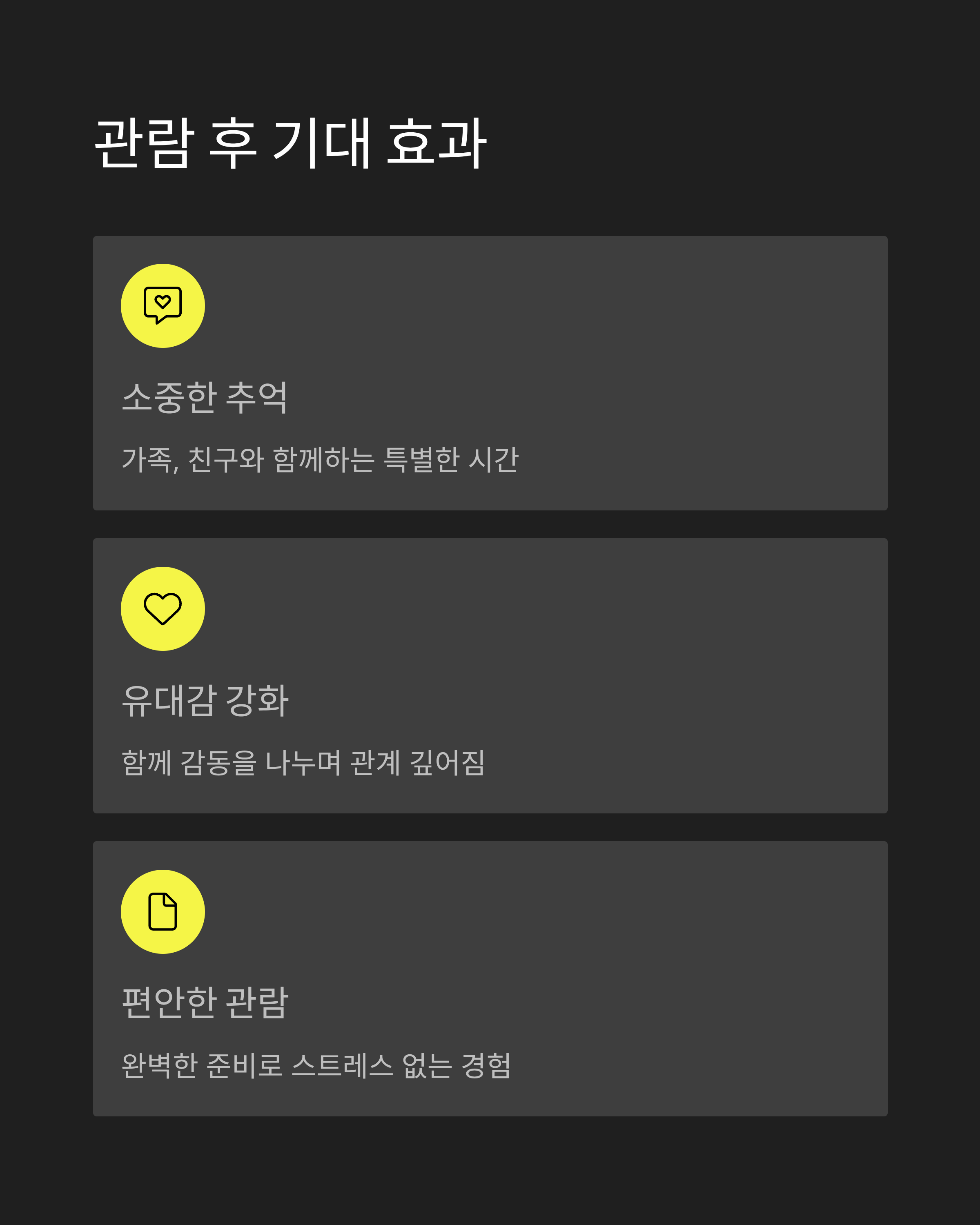 - 편안하고 즐거운 관람 경험을 할 수 있습니다.