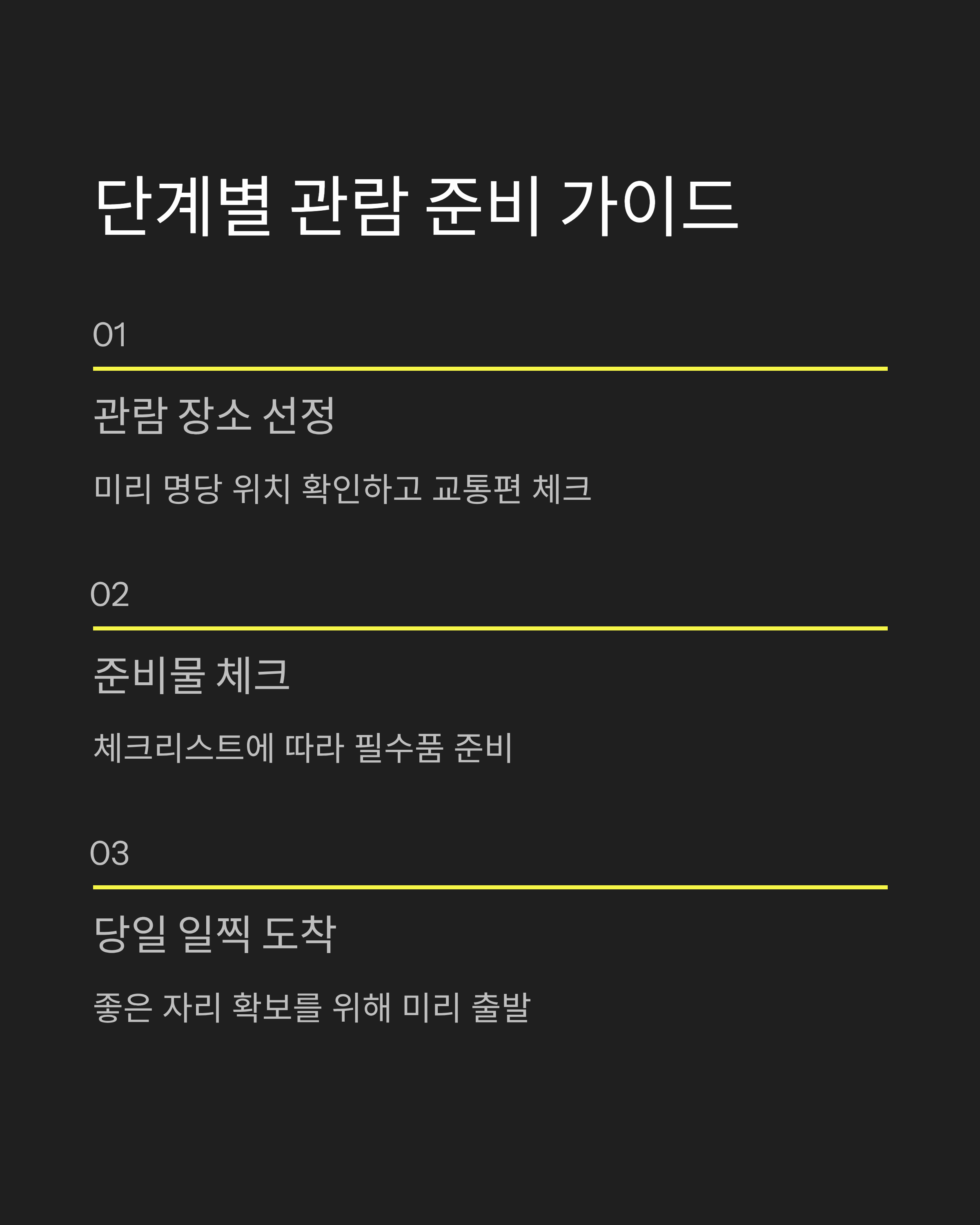 - 미리 관람 장소를 정하고, 교통편을 확인합니다.