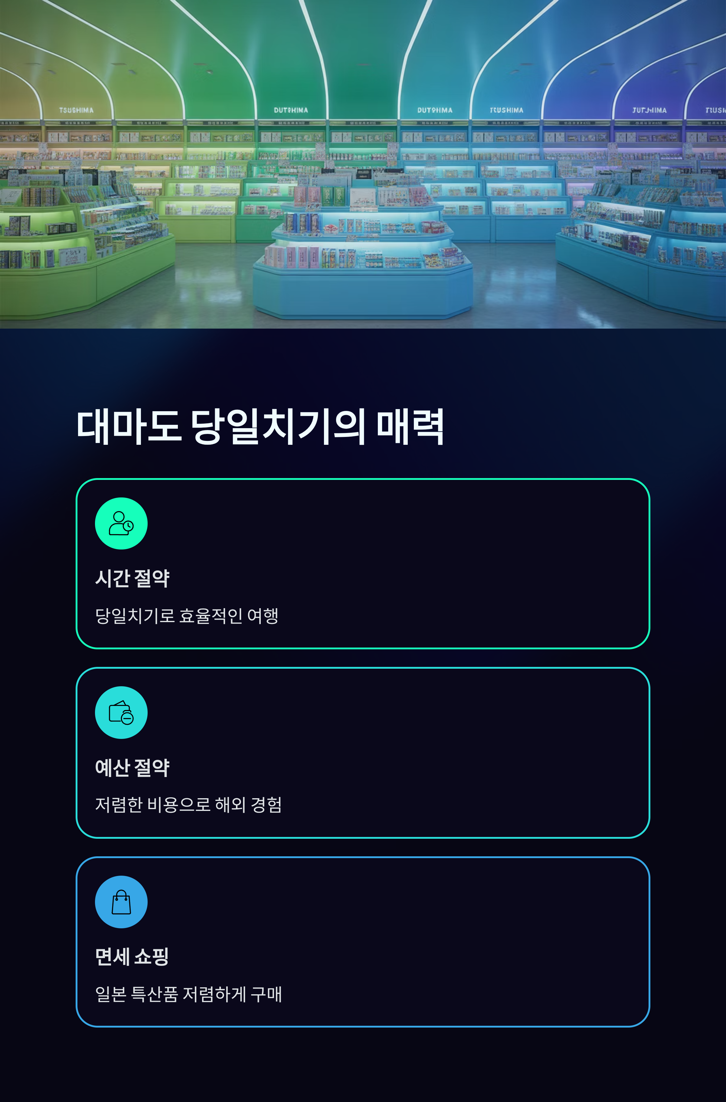 대마도, 부산에서 가장 가까운 일본 땅이자 저렴한 비용으로 해외여행 기분을 낼 수 있는 매력적인 곳입니다. 특히 당일치기 여행은 시간과 예산을 절약하면서 면세 쇼핑과 일본 특유의 분위기를 즐길 수 있어 인기가 높습니다.