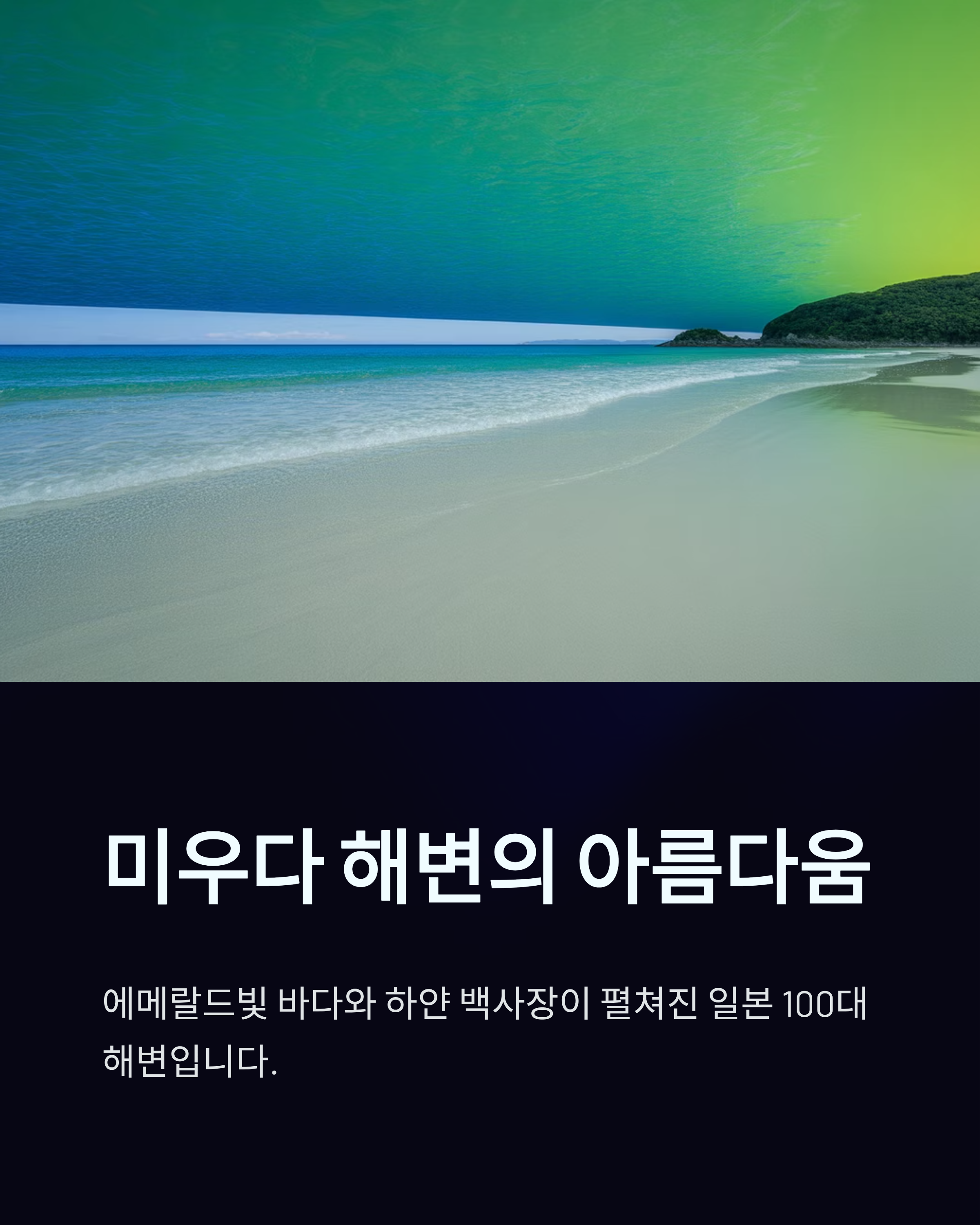 - 미우다 해변: 일본 100대 해변으로 선정된 아름다운 해변입니다. 에메랄드빛 바다와 하얀 백사장이 인상적이며, 해수욕을 즐기거나 휴식을 취하기에 좋습니다.